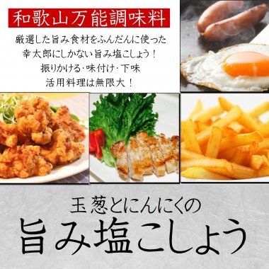 和歌山ラーメン京橋幸太郎から誕生した、家庭料理!キャンプ飯!色んな料理が時短簡単で更に美味しくなる和洋中万能調味料『旨みの幸』をお届けします。今まで使っていた塩こしょうの替わりに使うだけ!
